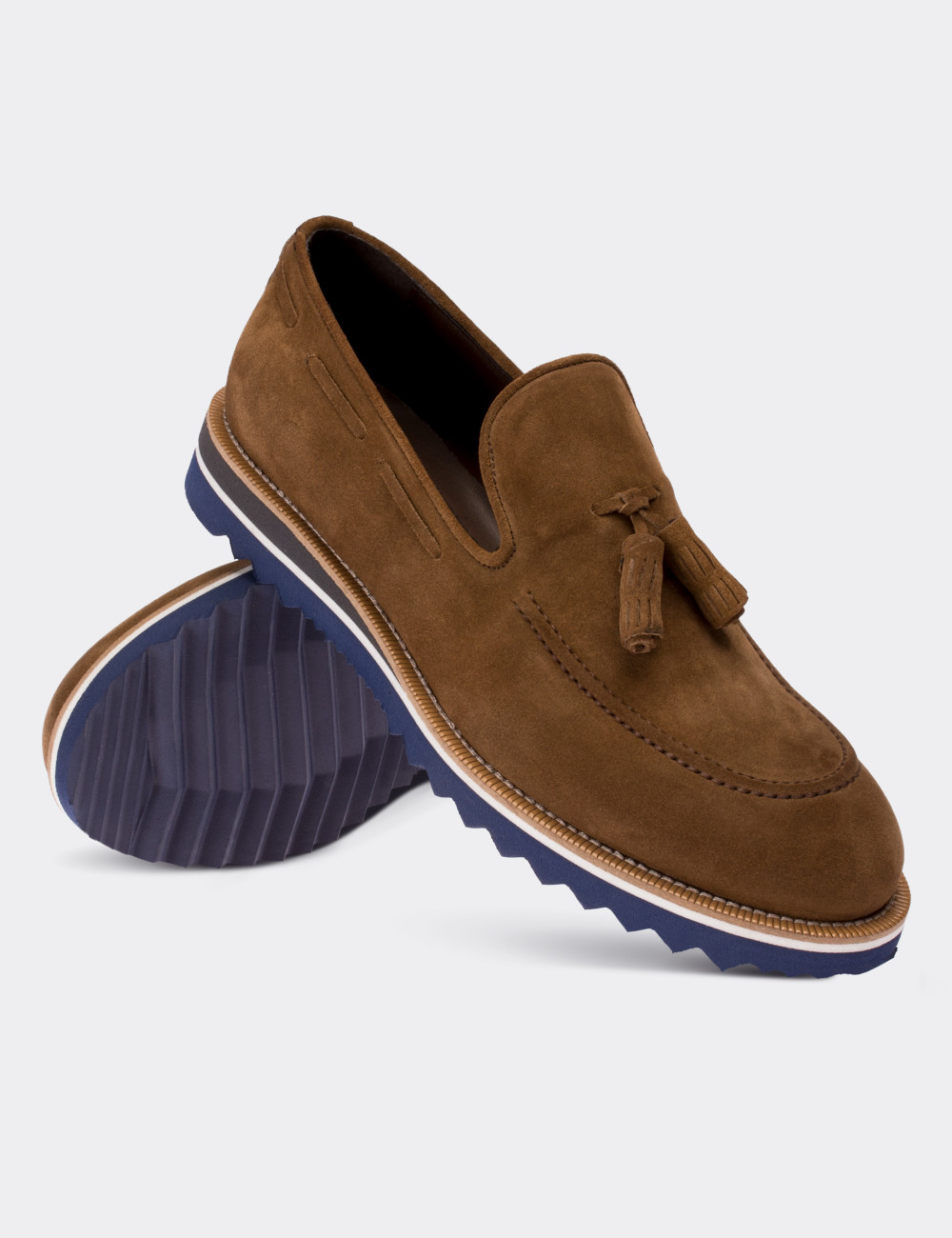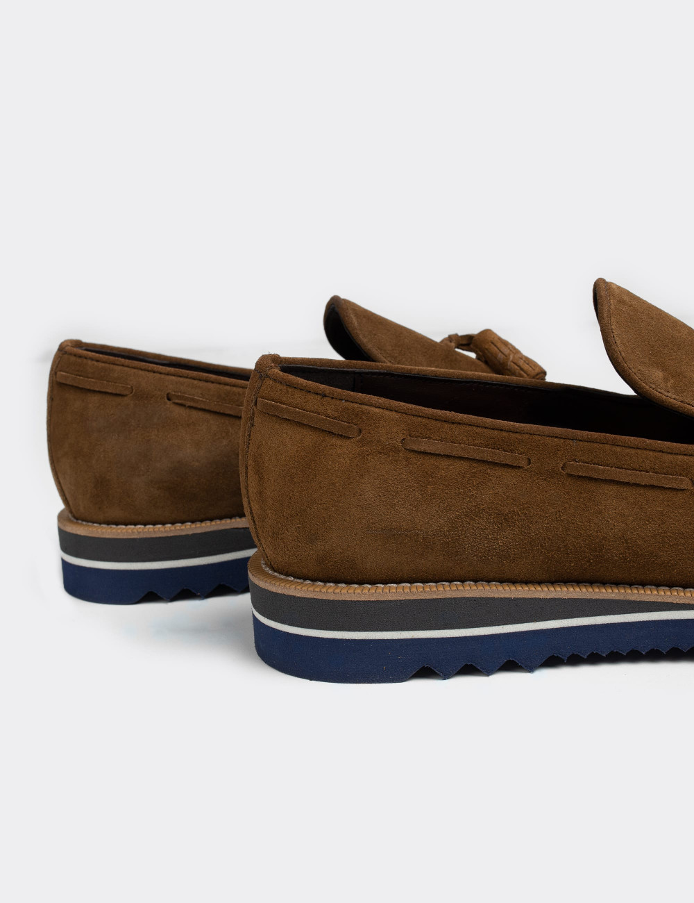 100% Suede calf leather, lightweight with the EVA sole, men's Tan Loafers & Moccasins Shoes